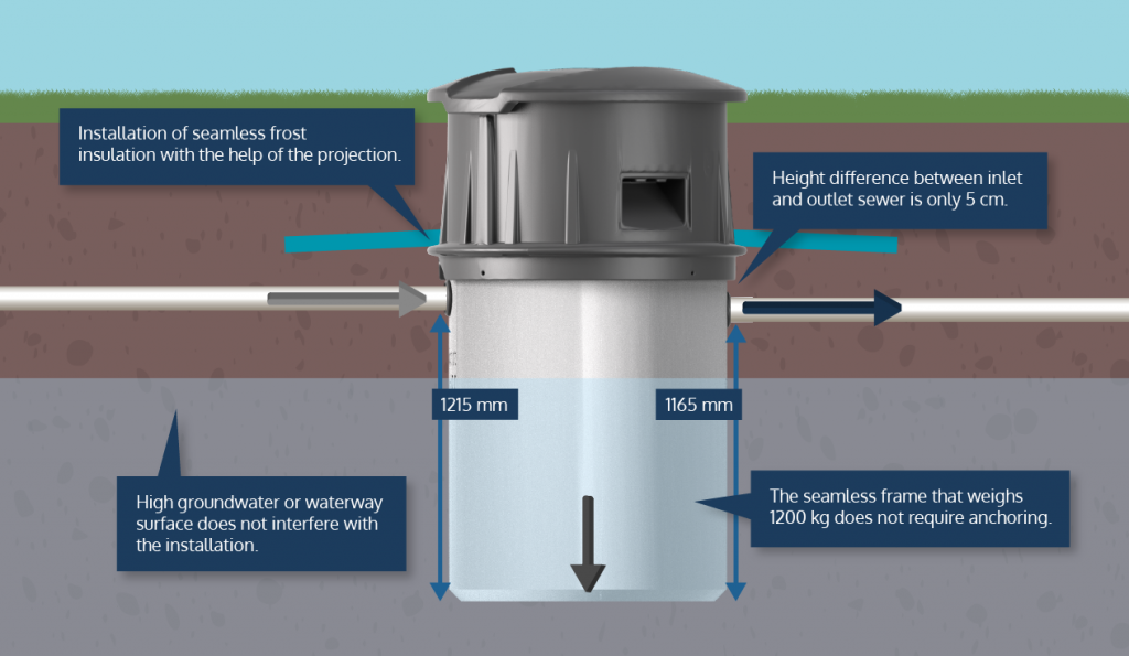 At the installation phase, frost insulation (e.g. Finnfoam) is installed in the Bioreactor against the installation platform reserved for it, and in this way a seamless insulation structure is formed. You do not need to do anything else and you will achieve tested care-free winter use – even in extreme conditions.