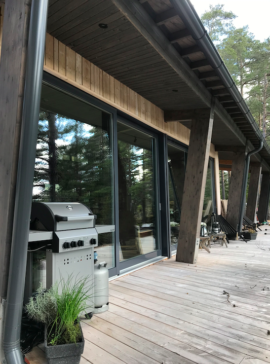 Byggnadsprojektet påbörjades ungefär två och ett halvt år sedan. Först gjordes de nödvändiga planeringarna för att få byggnadslov. Själva byggandet av huset tog ungefär ett och ett halvt år. Jari har byggt en stor del själv. Bland annat terrassen är ännu på hälft men allt borde bli färdigt i höst.