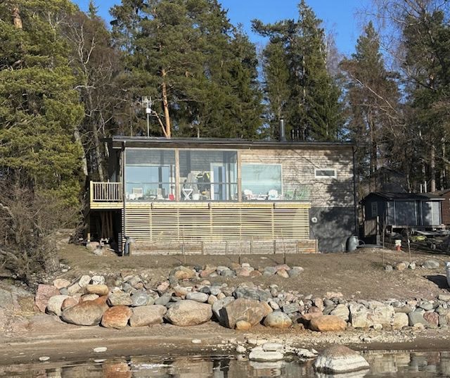 Espoon saaristossa sijaitsevalle kallioiselle saarelle on toteutettu ainutlaatuinen uudiskohde, joka tarjoaa unohtumattoman vapaa-ajanviettopaikan luonnon keskellä. Kyseessä on Mikael ja Susanna Winqvistin tänä keväänä valmistunut projekti. Tämä 80m² + 40m² kokoinen hirsirakenteinen talo on arkkitehdin suunnittelema ja talotekniikan puolelta jätevesiasiat on toteutettu yhteistyössä Vestellin kanssa.